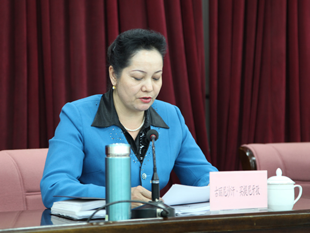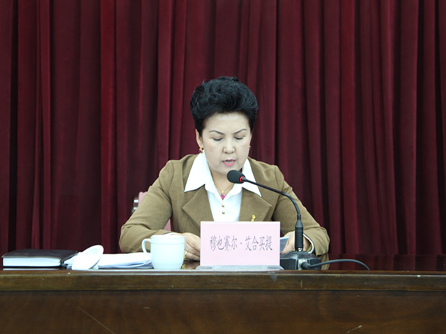 行署副专员古丽尼沙汗·买提尼牙孜同志就如何全面贯彻落实党的十八届三中全会、自治区党委八届六次全委(扩大)会议、地委扩大会议精神、此次会议精神以及做好2014年工作,分别从稳定、发展、维权、民生四个方面进行了总结讲话,并提出了一系列要求。同时,表扬了2013年度妇女工作先进县市、先进集体和先进个人。