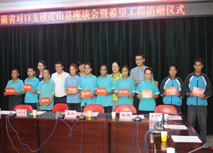 会上,安徽团省委书记李红同志做了讲话,表示今后将一如既往地支持皮山县共青团工作,并达成了以下对口支援协议:一是继续深入地开展青少年融情实践夏令营活动;二是开展青少年手拉手结对子活动;三是开展团干部培养、挂职、青年就业创业培训、优秀青年学习考察活动、青年企事业家互访活动;四是帮助建设农村青年之家、农村青春影院、少先队鼓号队项目;五是派遣大学生志愿者开展支教志愿服务;六是开展希望工程圆梦行动。