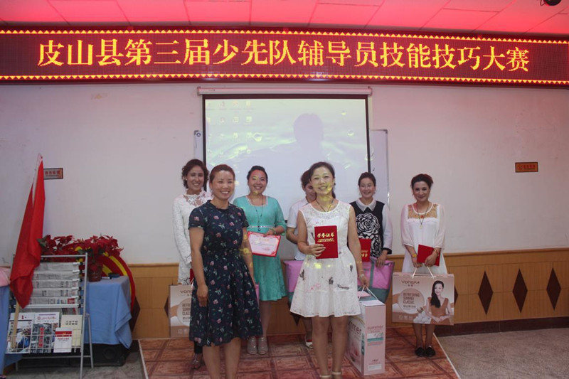经过激烈的角逐,最终县直九年一贯制学校大队辅导员刘慧慧同志荣获一等奖,县第三小学中队辅导员热依汗古丽·阿不力米提同志和桑株乡波斯卡九年一贯制学校大队辅导员热孜耶·麦麦提同志荣获二等奖,木奎拉乡小学中队辅导员布阿依夏木·阿巴斯同志、桑株乡一中大队辅导员阿丽同古丽·肉孜同志和木吉镇中学中队辅导员布威麦热姆·奥斯曼同志荣获三等奖。出席活动的领导为其颁发了荣誉证书和奖品。