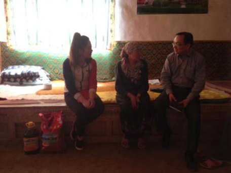 调研中,何书记还亲自来到自己“结对子”联系帮扶的特困户凯麦尔尼沙汗和苏地汗家进行慰问,为他们带去了大米、清油等生活用品,详细询问家庭情况和困难,积极为联系户排忧解难。