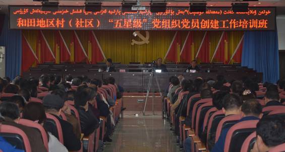 3月11日,和田县及时按照地委要求,召开“五星级”党组织和党员创建工作培训会,组织乡镇党政党建办主任、组织干事、乡镇村(社区)党组织第一书记、“访惠聚”驻村工作队队长、常驻和田县督导组成员和县委组织部全体干部共280余人参加集体轮训。