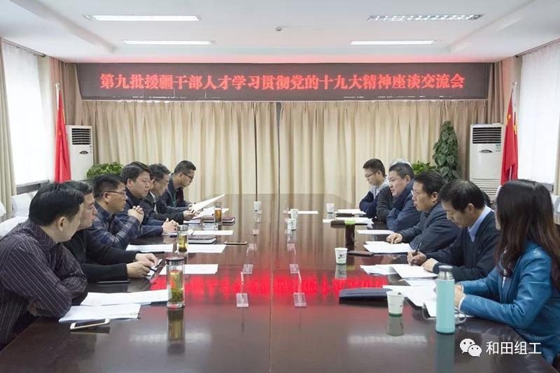 1月3日,和田地区组织召开第九批援疆干部人才学习贯彻党的十九大精神座谈交流会,中央和国家机关、中央企业、高校援疆干部及北京市、天津市、安徽省援疆干部代表参加了座谈交流。